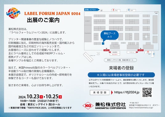 兼松株式会社は、2024年10月23日~25日に東京ビッグサイト西3ホールで開催される「ラベルフォーラムジャパン2024」に出展します。