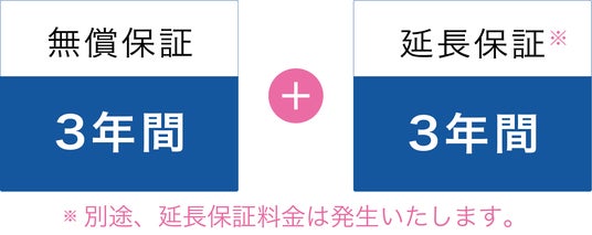 標準の製品保証3年間(無償)に加え、保証延長サービスにご加入いただくと、お選びの期間に応じて最長6年まで製品保証と同等の内容で保証が延長されるので、安心して長期間ご使用いただけます。