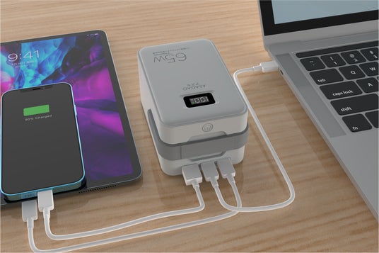 最大PD65WのUSB-Cポート2口と最大12WのUSB-Aポート1口を搭載。1台のバッテリーを複数の機器でシェアしてお使いいただけます。