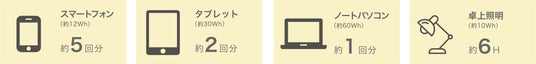 モバイルバッテリー1台あたりの容量は21600mAh(約69Wh)。さらに充放電サイクルは約3000回以上。従来のモバイルバッテリーの約6倍の長寿命でたっぷり、長くお使いいただけます。