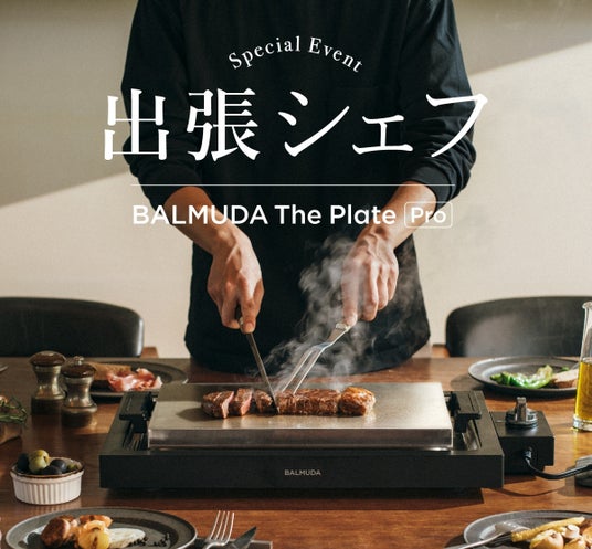 お客さまの日頃のご愛顧に感謝の気持ちを込めて、製品をご購入いただいた方限定の特別企画「出張バルミューダシェフ」を実施します。お客さまのご自宅で、バルミューダのシェフ・岡嶋がBALMUDA The Plate Proを使ったコース料理をご提供いたします。製品開発に関わったプロの料理人ならではの調理のポイントや楽しみ方を目の前で体験いただける、BALMUDA The Plate Pro発売1周年特別企画です。バルミューダだけの特別な体験に、ぜひご応募ください。