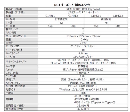 RC1キーボード: https://item.rakuten.co.jp/realforce/c1h/