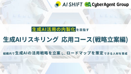 株式会社サイバーエージェント(本社:東京都渋谷区、代表取締役:藤田晋、東証プライム市場:証券コード4751)の100%子会社で、生成AIを活用できる人材を育成する生成AIリスキリングを提供する株式会社AI Shift(本社:東京都渋谷区、代表取締役社長:米山結人)は、組織内で生成AIの活用戦略からロードマップの策定をできる人材の育成を目指した、「生成AIリスキリング 応用コース(活用戦略立案編)」の提供を開始しました。