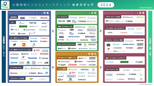 位置情報を活用したマーケティングやサービス施策の促進を目的に活動する85社の企業連合である、一般社団法人LBMA Japan(東京都千代田区/代表理事:川島邦之)は、日本国内に於ける位置情報サービスを展開する企業(LBMA Japan加盟企業)を中心とした位置情報ビジネス&マーケティングカオスマップの2024年版を作成しましたので、公開致します。