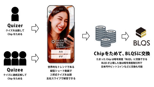 『QAQA(カカ)』は、クイズを出題したり、解答者として連続正解してゲーム内通貨「CHIP」をため、たまった「CHIP」を暗号資産「BLQS」に交換することができる、ユーザー投稿型の縦型ショート動画クイズアプリで、現在β版を配信しています。『QAQA』は、何かに取り組んでいる人や企業が持っている強い想いや熱量を縦型クイズ動画という触れやすいコンテンツにして「届ける」ことができる動画SNSです。これまでに、既に18社の企業にご参画いただき様々なコラボレーションを行ってまいりました。今後も、参画いただける企業を募集しております。