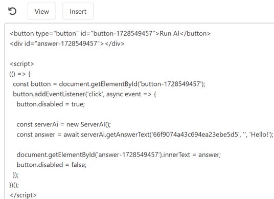 const answer = await serverAi.getAnswerText('AIのモデルURL【※自動で入力】','', 'AIに対する質問を入力');