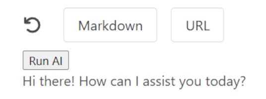 ・「Run AI」ボタンを押すと、「Hello!」というテキストをServer AIに送信してその返答を表示します。