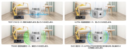 家に人がいるときには静音モード「ULTRA」を、いないときには強力モード「DUO」や「TRANS」を選べます。さらに、テストモードで簡単に動作確認が可能。ネズミやゴキブリだけでなく、蚊やアリ、ハエ、ダニなど多様な害虫にも対応します。製品には日本語取扱説明書が付属しており、購入後も安心してご利用いただけます。