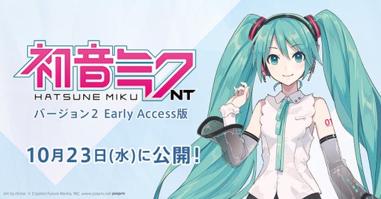 クリプトン・フューチャー・メディア株式会社(本社:北海道札幌市、代表取締役:伊藤博之、以下クリプトン)は、歌声合成ソフトウェア『初音ミク NT』をお使いいただいている正規ユーザー様に向けて、同製品の新バージョンである『初音ミク NT(Ver.2)』のEarly Access版を、2024年10月23日(水)より無償で公開いたします。なお、Ver.2のメジャーアップデート版は2025年前半に公開予定で、『初音ミク NT』の正規ユー ザー様には Early Access版と同様に無償で提供いたします。