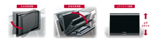 また、取り付け後も左右-15°~15°の首振りや-20°~60°の前後角度、上下スライドの位置調整ができます。