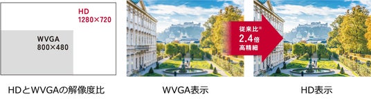1280×720の高精細HD画質でアイコンも文字もクッキリと見やすく描画。