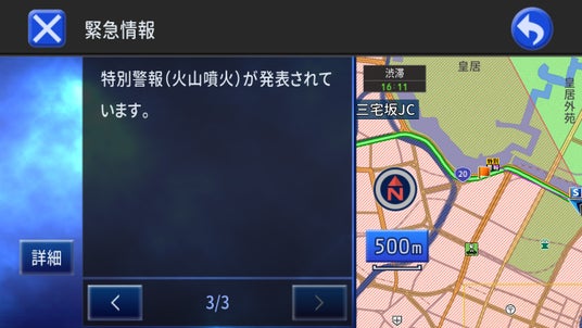 ■ VICS WIDEを利用して、気象情報や特別警報を表示
