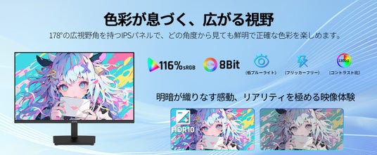さらに、100Hzのリフレッシュレートと123%のsRGB高色域により、色彩が豊かで、どんな業務でもプロフェッショナルな仕上がりをサポートします。