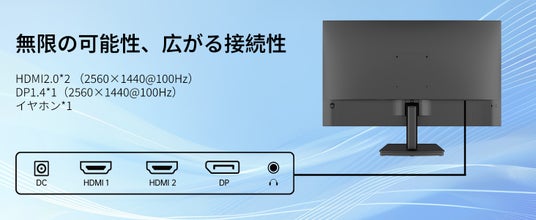 接続端子: ×2 HDMI 2.0、×1 DP1.4、×1 イヤホン端子