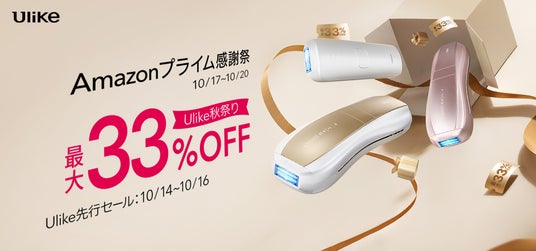 家庭用美容機器メーカー「ユーライクジャパン株式会社」(本社:東京都港区)が展開する家庭用光美容器世界NO.1*ブランド「Ulike(ユーライク)」は、Amazonで10月17日(木)~10月20日(日)に開催される「Amazon プライム感謝祭」に先駆けて、10月14日(月)より先行セールを実施いたします。期間中は、2024年春の新作「Ulike Air 10(ユーライク エアテン) IPL光美容器」を含む人気製品5機種を特別価格で販売いたします。