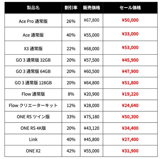 セール期間中は、大人気360度アクションカメラInsta360 X4が5%、Insta360 Ace Proが最大26%割引、4KウェブカメラInsta360 Linkが40%割引になります。また、世界最小アクションカメラInsta360 GO 3も20%割引で販売し、大変お買い求めやすい価格となっています。秋の行楽シーズンに備え、思い出を記録する準備をしましょう。