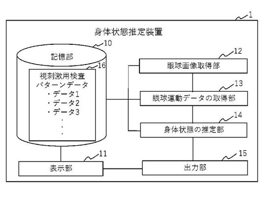 本特許は、(1)眼球運動から(2)運転能力を(3)推定する装置およびプログラムを特許請求の範囲としています。