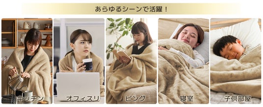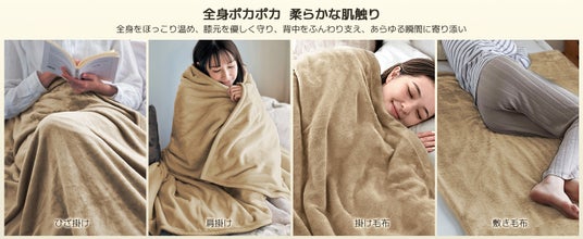電気敷き毛布と電気掛け毛布兼用可能。リラックス時にソファに掛けて温まったり、デスク作業時にピンポイントで体を温めたりと、1枚の電気カーペットで寒い冬の日には暖かさを提供します。