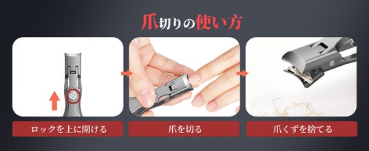 爪切りはワンクリックで簡単に開く設計で、少ない力でしっかり爪を切ることができます。軽い力で握るだけで、硬い爪もスムーズにカットでき、力の弱い方やご年配の方でも手軽にお使いいただけます。