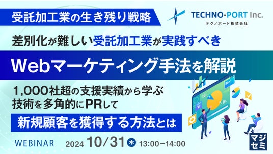 マジセミ株式会社は「【受託加工業の生き残り戦略】差別化が難しい受託加工業が実践すべきWebマーケティング手法を解説」というテーマのウェビナーを開催します。