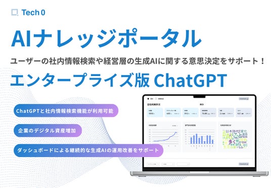 株式会社 Tech0(本社:東京都中央区、代表取締役:濱田隼斗、以下「Tech0」)は、ChatGPTと情報検索が可能なエンタープライズ版生成AIサービス「AIナレッジポータル」の提供を開始しました。
