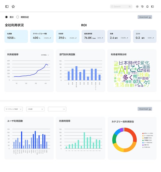 4.ダッシュボードで全体の利用状況や質問のトレンドをリアルタイムに可視化します。