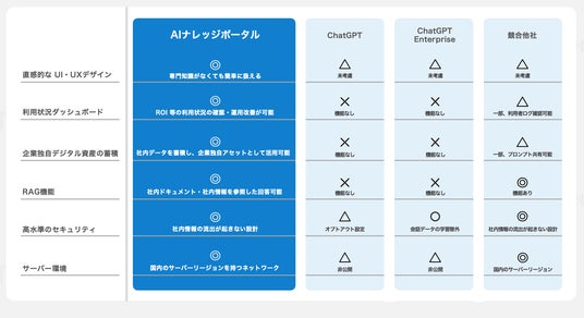生成AI利用時に懸念される社外情報の流出が起きることがないような設計となっています。