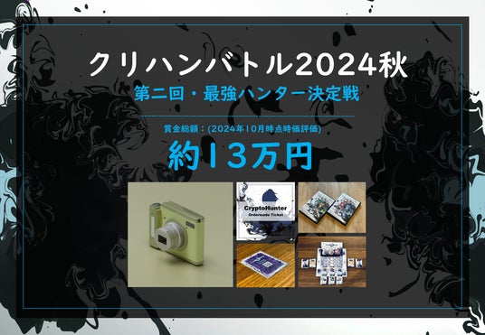 2024年10~12月中にCryptoHunter第二次大会「クリハンバトル2024秋」を開催しており、総額約13万円(2024年10月時価)の景品を出しています。