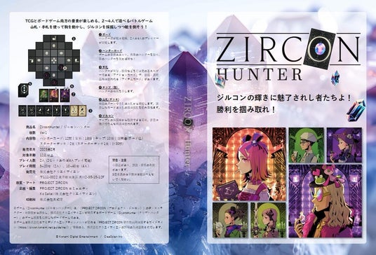 更に、PROJECT ZIRCON ((C)Konami Digital Entertainment)において、CryptoHunterのOEMボードゲーム「ZirconHunter」の開発に取り組んでおり、ゲームマーケット2025春にリリースする予定です。