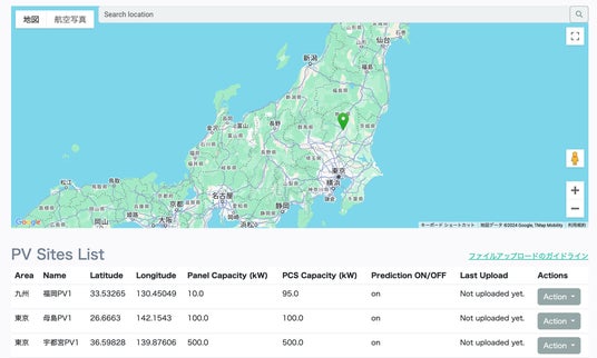 発電設備の地点を登録するだけで、気象予報を自動で取得し、発電予測が可能。