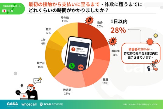 日本の詐欺被害者の28%が、詐欺師の最初の接触から”1日以内に騙されている”ことが判明