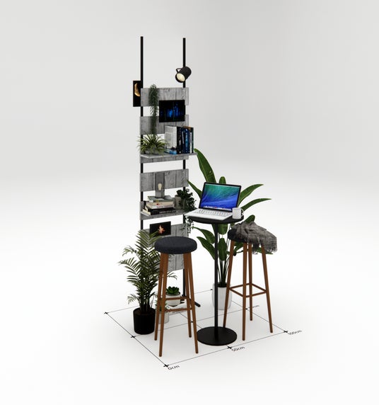 標準仕様として、3つのモニター、2つのスピーカー、テーブル、椅子、ライト、観葉植物、およびその他空間を彩るアイテムが含まれており、お客様のニーズに合わせてカスタマイズも可能です。