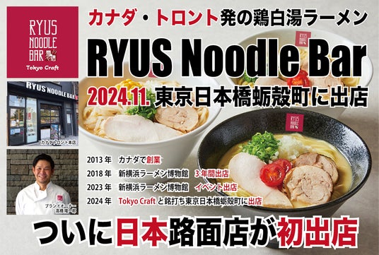 カナダ・トロント発の鶏白湯ラーメン「RYUS Noodle Bar」が東京日本橋蛎殻町に日本路面店を初出店