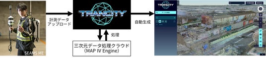映像処理ソフトウェア技術で、TRANCITYの3次元データ処理クラウド内にMAP IV Engineを移植し、クラウド上での点群解析処理を実現