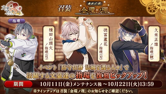 DMM GAMES「文豪とアルケミスト」イベント『防守任務「法城を護る人々」』開催!限定召装『怪物タチノ秋宴』同時開催のお知らせ