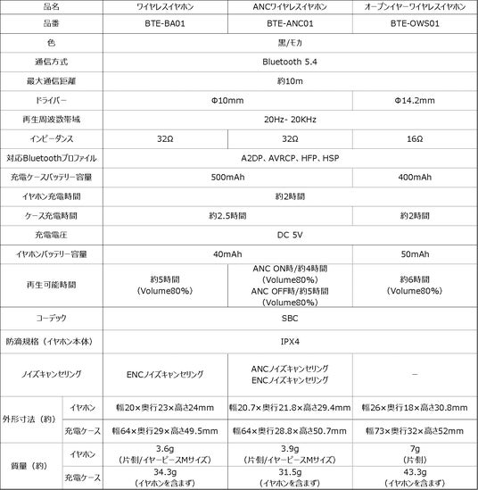 また、オープンイヤータイプではないワイヤレスイヤホンも2種類同時に発売いたします。