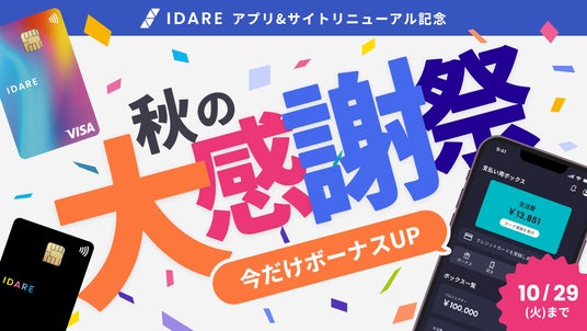 IDARE(イデア)が「貯まるキャッシュレスアプリ」にリブランディング。同時にIDARE秋の大感謝祭キャンペーンを実施!
