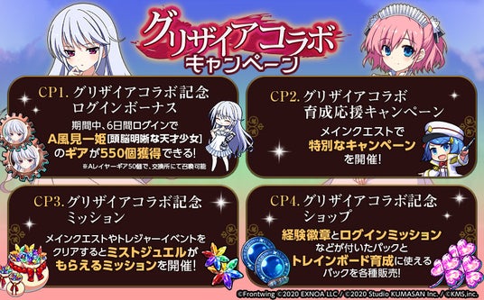 合同会社EXNOA(本社:東京都港区、CEO:村中 悠介、URL:https://games.dmm.com/)と株式会社KMS(本社:東京都品川区、代表:梶原 健太郎、URL:http://kms3.com/ )は、『ミストトレインガールズ~霧の世界の車窓から~』において、2024年10月15日(火)より『グリザイアシリーズ』とのコラボを開催することをお知らせいたします。