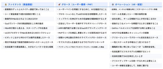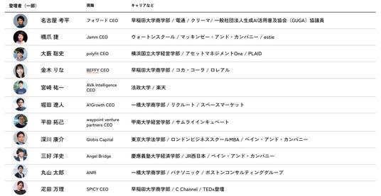 シリーズA、Bのラウンドで成長中のスタートアップ起業家や、Exit実績のある経営者、有名VC投資家などによる、事業領域やテーマをかなり限定した実例性の高いコースプランです。実際に検証した仮説・戦略・結果・失敗 をリアルに、そして詳細に限定公開。(事業領域やテーマは随時増加)