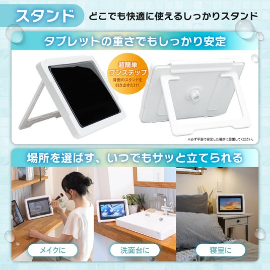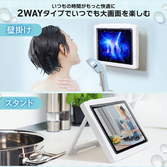 【お風呂が楽しくなるグッズ】タブレット防水ケースで、映画や動画を大画面で楽しもう!長時間の半身浴にも◎壁掛け、スタンドの2WAY!料理やメイク中も快適。ワンランク上のおうち時間を過ごしませんか?