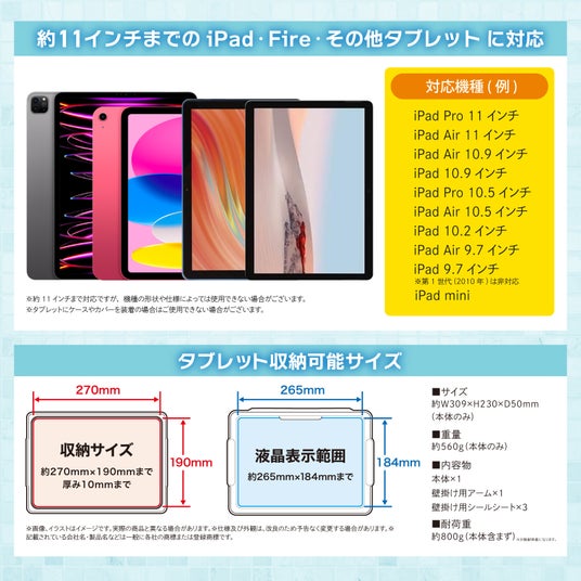 約11インチまでの iPad、Fire、その他タブレット に対応