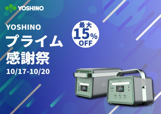 株式会社ヨシノパワージャパン(東京都中央区、以下「YOSHINO」)は、10月19日(土)0:00から10月20日(日)23:59までAmazonにて開催されるAmazonプライム会員限定のセールイベント「プライム感謝祭」と、開催2日前の10月17日(木)0時から開催される「プライム感謝祭先行セール」にてYOSHINOの固体電池採用のポータブル電源とソーラーパネルをセールいたします。冬場の暖房器具を停電下でも動作させることのできるYOSHINOの製品を購入しやすい価格でご提供いたします。