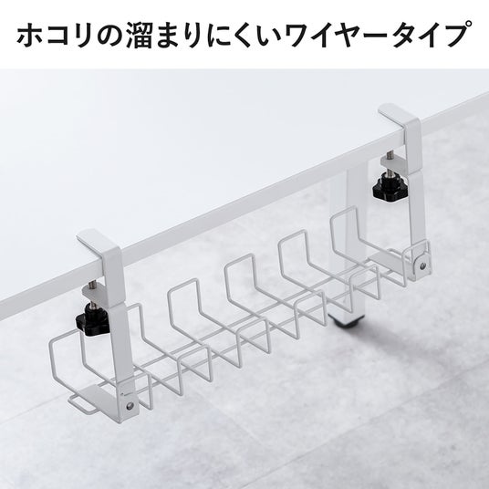 ホコリが溜まりにくいワイヤータイプだから、掃除が簡単です。また、まとめたケーブルをひっかけたりすることもできます。