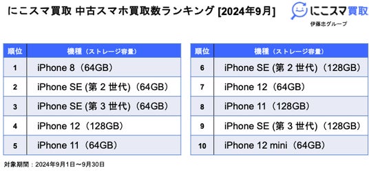にこスマ|2024年9月中古スマホ販売・買取数ランキング