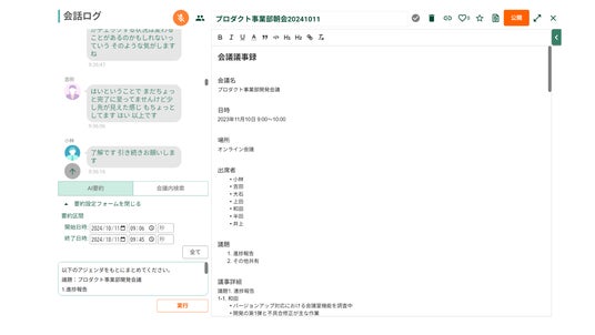 標準として提供しているAI要約機能に加え、ユーザーが独自の指示をAIに与えることが可能です。例えば、「以下のアジェンダに沿って要約してください」といった具体的な要望に合わせて要約を生成できます。
