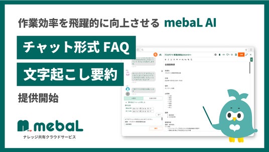 ナレッジ共有サービスmebaL(メバエル)、生成AI「Gemini」をベースとしたmebaL AIを搭載。チャット形式FAQ機能および文字起こし要約機能を提供開始。