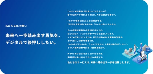 『DXE Station』は、マニフェスト管理、委託契約書、行政報告など、一連の産業廃棄物処理業務を電子化・効率化するシステムです。