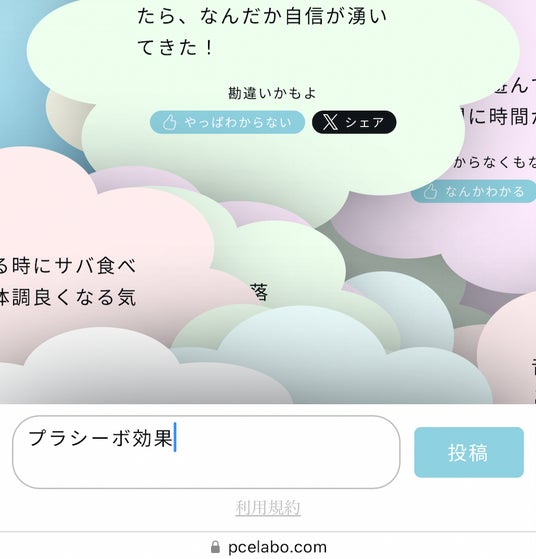 共感できるプラシーボ効果を見つけたら「なんかわかる」ボタンを押してみましょう。たくさんの共感が集まったら、いいことがあるかも。