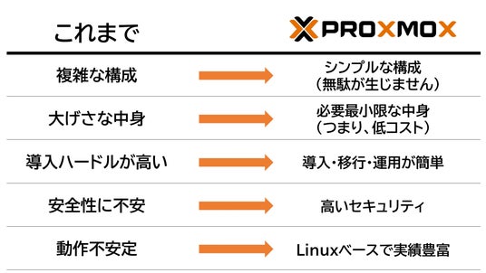 下記は、これまでの仮想化ソフトと【PROXMOX】のちがいです。