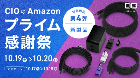 小型・高出力のモバイルバッテリー「SMARTCOBY」シリーズや、小型のGaN急速充電器「NovaPort」シリーズなどの各種充電機器を展開する株式会社CIOは、2024年度「プライム感謝祭」に向け、同社主力を「プライム感謝祭」特別価格にて販売いたします。(※2)